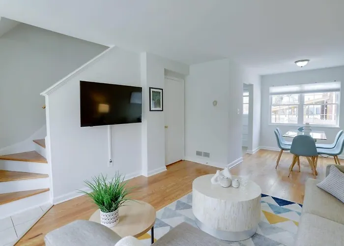 Deze villa biedt onder andere koffie- en theevoorzieningen, een koelkast, een oven om zelf te koken. District Taco biedt Mexicaanse gerechten en is een van de eetgelegenheden binnen 5 minuten loopafstand vandaan. Sojourn Townhome In Old Town Alexandria With Relaxing Yard villa is gelegen op slechts 450 meter verwijderd van S Washington St & Green St bushalte en op slechts 1 km van Alexandria Union treinstation.